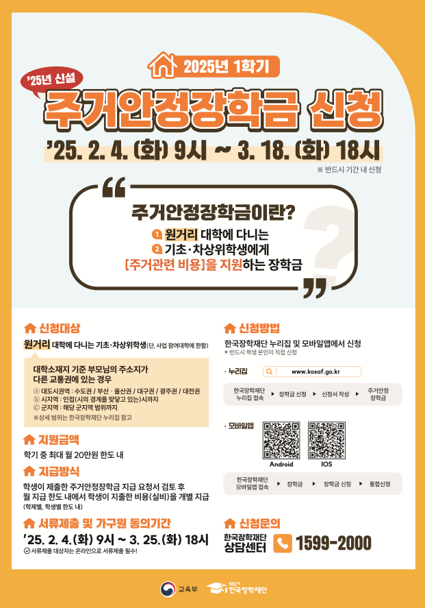 이번 글에서는 2025년 1학기 주거안정장학금의 신청 방법, 지원 대상, 혜택, 그리고 꼭 알아둬야 할 유의사항까지 정리해 보겠습니다.