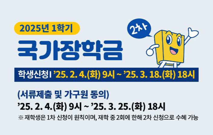2025년 1학기 국가장학금 2차 신청 기간은 2025년 2월 4일부터 3월 18일까지입니다.